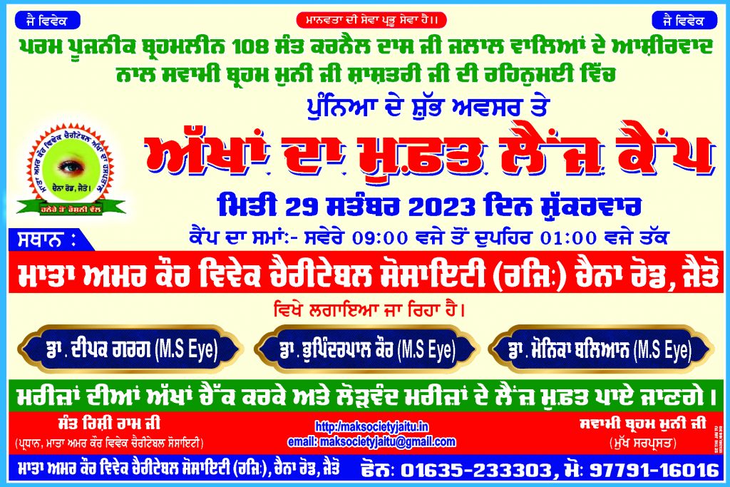 HOME News Top Slide FREE EYE Camp 29-9-2023 Jaitu MAK September 22, 2023 Continue Reading Previous 38 ਵਾਂ ਆਈ ਡੋਨੇਸ਼ਨ ਪੰਦਰਵਾੜਾ ਮਨਾਉਣ ਸਬੰਧੀ।#Mata#Amar#Kaur#Vivek#Charitable#Society#Jaitu#Next Today Eye Camp 29-9-2023 Jaitu More Stories Casino HOME mostbet apk mostbet azerbaijan News ਰਾਧਾ ਰਾਣੀ ਚੈਰੀਟੇਬਲ ਟਰੱਸਟ ਬਰੀਵਾਲਾ ਮਿਤੀ 28 ਫਰਵਰੀ 2026 ਦਿਨ ਸ਼ਨੀਵਾਰ ਨੂੰ ਸਥਾਨ: ਪੰਚਾਇਤੀ ਧਰਮਸ਼ਾਲਾ, ਮੰਡੀ ਬਰੀਵਾਲਾ ਵਿਖੇ ਲਗਾਇਆ ਜਾ ਰਿਹਾ ਹੈ। MAK February 18, 2026 HOME News 14 FEB 2026 MAK February 11, 2026 HOME News Top Slide ਪੁੰਨਿਆ ਦੇ ਸ਼ੁਭ ਅਵਸਰ ਤੇ 40ਵਾਂ ਅੱਖਾਂ ਦਾ ਮਫ਼ਤ ਲੈਂਜ ਕੈਂਪ 1-2-2026 MAK January 19, 2026